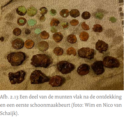 De oudste punt is geslagen rond 90 voor Christus, meer dan 2000 jaar oud dus!! Deze spectaculaire vondst vormde de aanleiding voor een archeologisch onderzoek door de Rijksdienst voor het cultureel Erfgoed in 2018. De belangrijkste vraag die beantwoord moest worden, was waarom de munten op deze plek lagen.